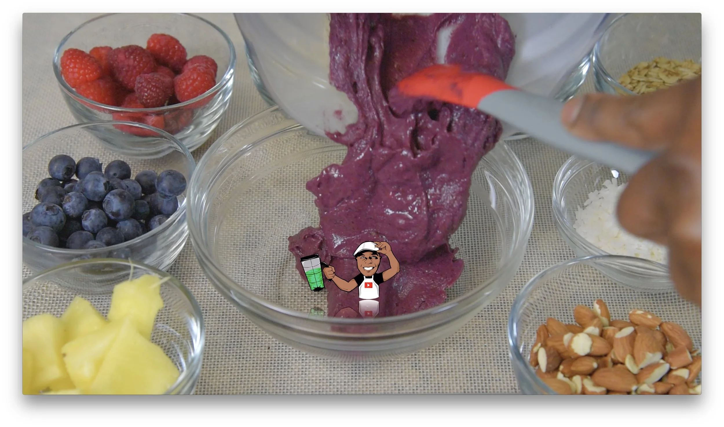 For example, in the above photos I create one of my new series of Expression Smoothie Bowls. The smoothie mixture can be a hit or miss if not timed perfectly while blending. My smoothie mixture took 52 seconds to create the perfect texture. I simply touched the Up/Down buttons until the timer read 52 seconds, then touched the start button. I quickly ramped the variable speed control to the highest. It stops automatically when the timer reads zero.