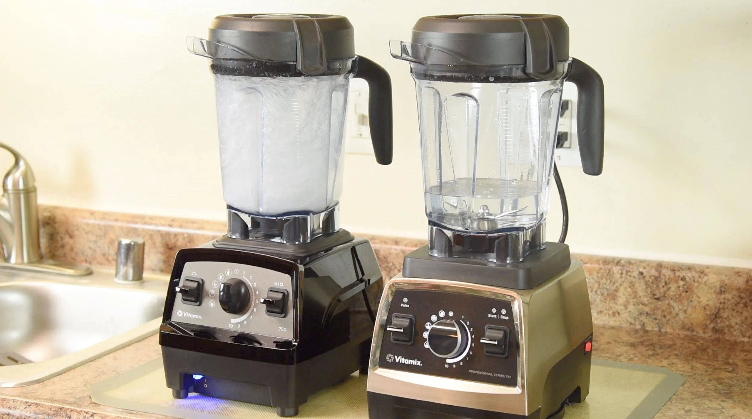 So let’s talk about noise. The elephant in the room. In my testing the Vitamix Pro 750 on the right had a decibel level of 80 peak while the Propel peaked at 87 db so it was louder. You can hear this in my YouTube video presentation of the Propel Series models. The Pro 750 on the right is clearly quieter due to the built-in sound dampening materials.